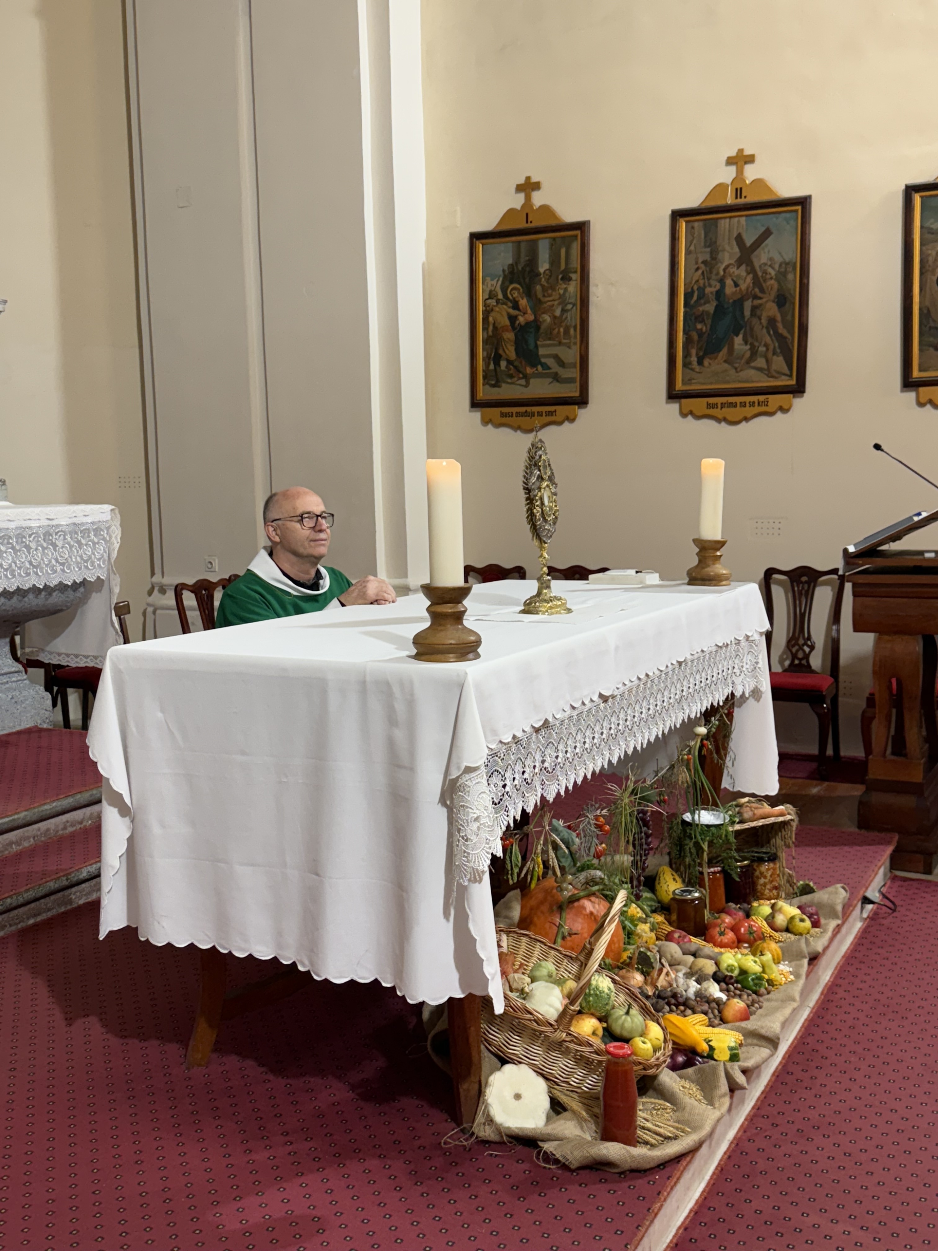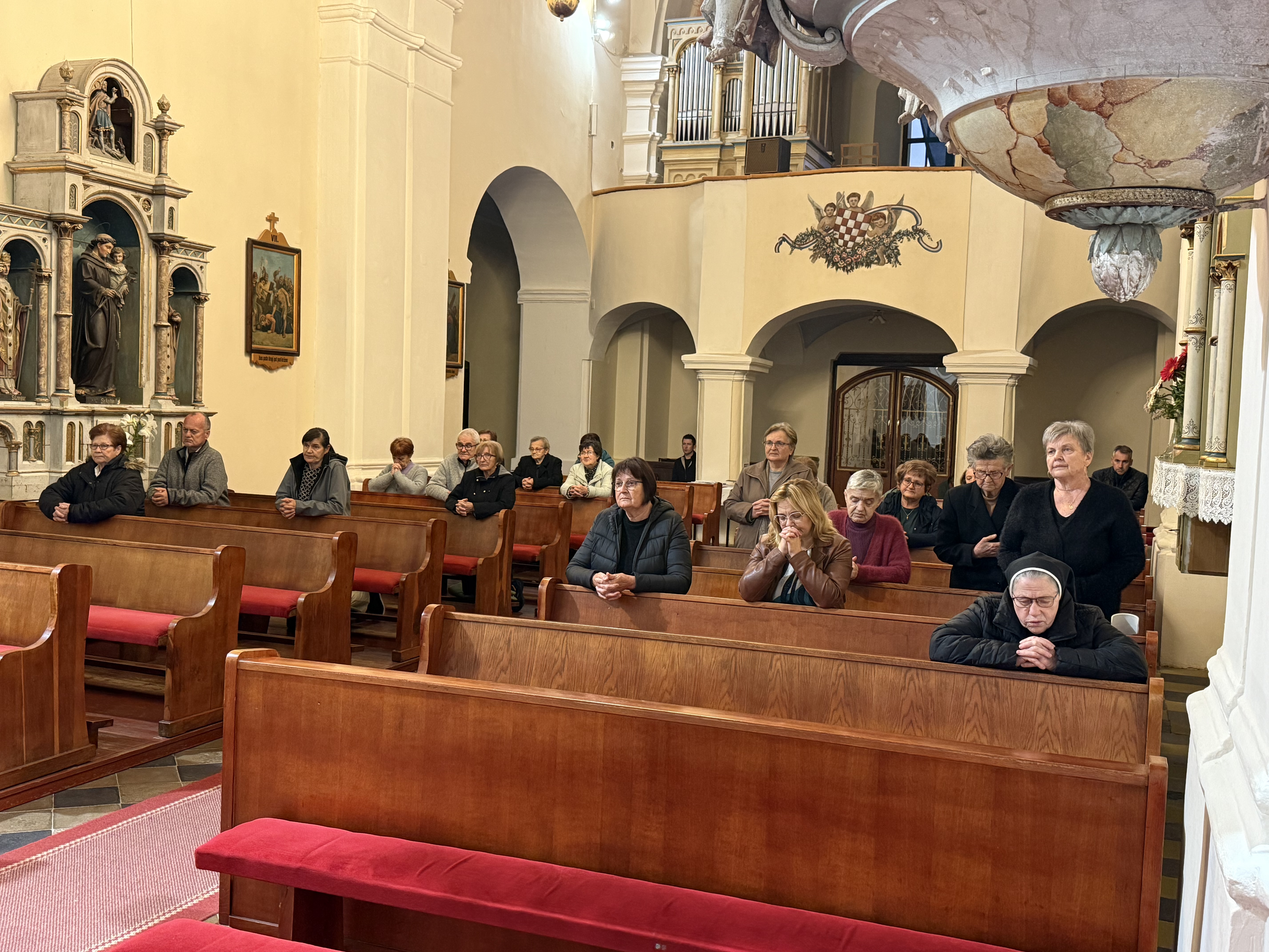 Srijeda, 15. 10. 2025. U župnoj crkvi sv. Benedikta i Žalosne Gospe u Kloštru Podravskom, Prijatelji Malog Isusa okrunili su svoj molitveni dan euharistijskim slavljem i klanjanjem prateći hodočasnike na hodočašću "Stadlerovim stopama" od Slavonskog Broda do Sarajeva.