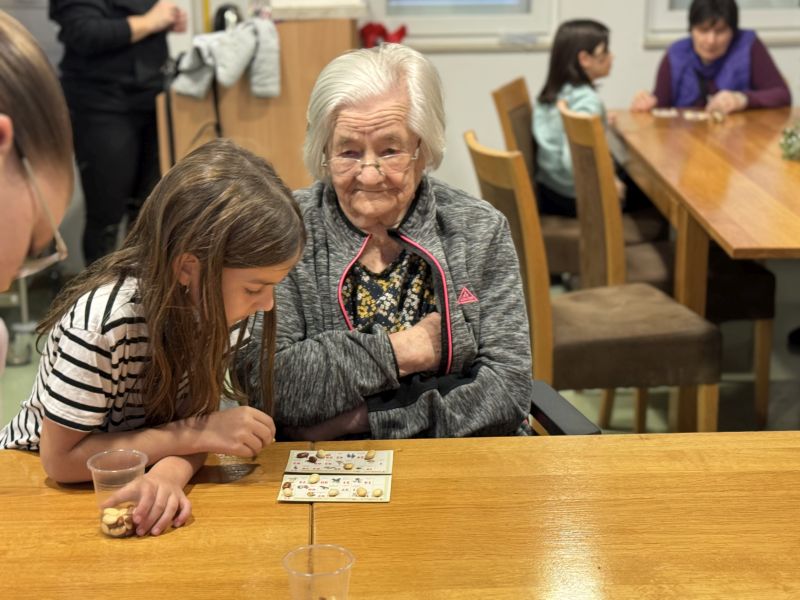 Program je započeo druženjem Djece Bezgrešne i naših korisnika kroz veselu igru tombole. Osmijesi, uzbuđenje i topla atmosfera ispunili su prostoriju dok su mali i veliki zajedno tražili svoje brojeve, bodrili jedni druge i dijelili radost svakog dobitka.