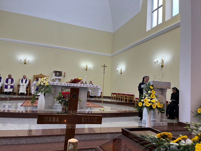 Subota, 29. 11. 2025. U petak, 28. studenog 2025. godine, Misom zadušnicom u crkvi Gospe Žalosne u Čardaku, sahranjena je Služavka Malog Isusa Provincije Bezgrješnog Začeća BDM s. M. Vilibalda (Mara) Kvesić koja je blago preminula u Gospodinu okrijepljena svetim sakramentima, 24. studenog 2025., u 81. godini života i u 59. godini redovništva u Kliničkom bolničkom centru Zagreb (Rebro).