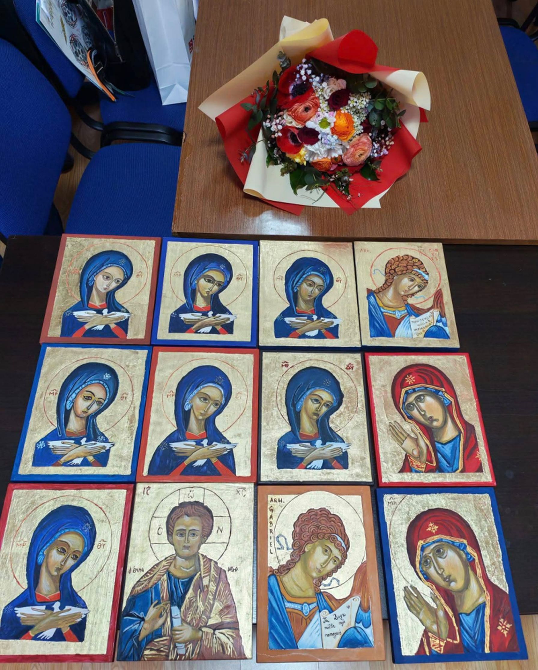 Istog dana završen je tečaj Ikonopisanja koje je vodila naša članica Višnja Rickijević. Pred večernju krunicu i sv. Misu bio je i svečani blagoslov ikona. Tečaj se odvijao pod okriljem Gospe od Pojišana u pastoralnoj dvorani svetišta. Zajednička nakana sudionika bila je molitva za nova svećenička i redovnička zvanja, posebno kapucine i sestre Služavke Maloga Isusa, sve Prijatelje Maloga Isusa i nerođene. Upravo na Blagovijest ili Navještenje Gospodinovo kad je započelo spasenje, obilježava se i dan nerođenih. Organizatorima bio je cilj da bude blagoslov ikona upravo na svetkovinu Blagovijesti.
