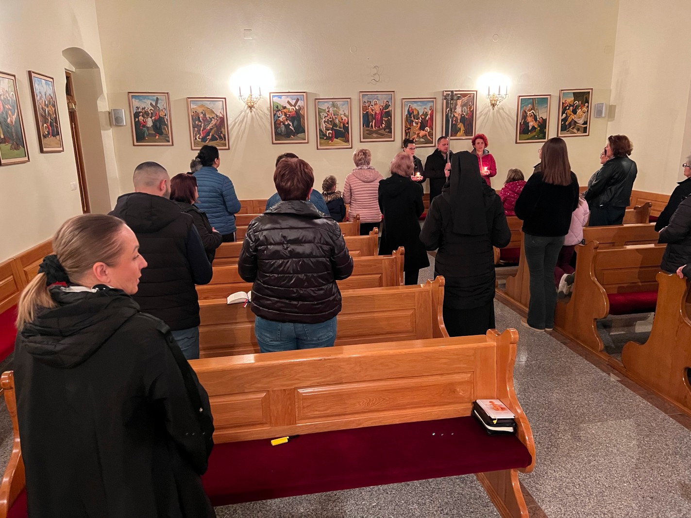 Petak, 6. 3. 2026. Dana Gospodnjeg 25-og veljače zvonila su zvona i na kapeli Male Gospe u Marijinom domu. Zvona su najavila susret, pozivala na molitvu i označila početak. Današnji susret započeo je pobožnošću križnog puta, a euharistijsko slavlje koje je uslijedilo predslavio je vlč. Florijan Kvetek, župnik župe sv. Euzebija i Poliona. Župnik je na početku misnog slavlja radosno pozdravio vjernike i članove Društva Prijatelja Malog Isusa okupljene da zajedno promišljamo o otajstvu Utjelovljenja. U homiliji vlč. Kvetek je progovorio o identitetu Služavke, poslanju služenja kojeg ima svaki čovjek te o karizmi sestara koju nam je predao sluga Božji Josip Stadler i zbog koje smo se danas okupili.