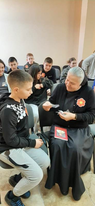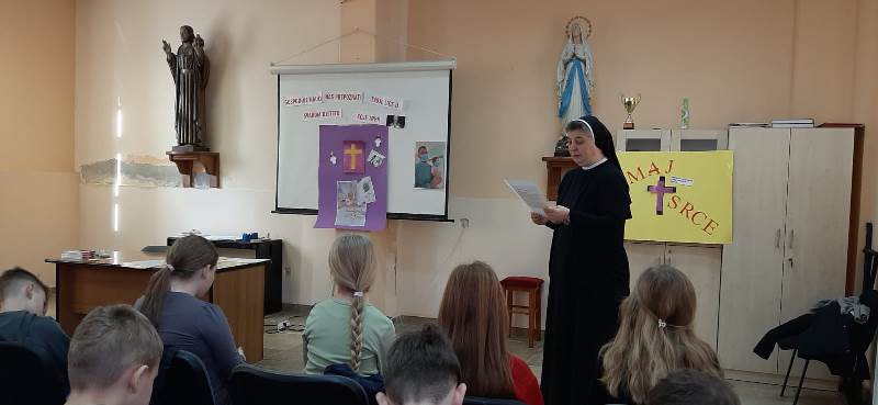 Dan duhovne obnove započeo je jednosatnim susretom s djecom trećeg razreda na temu duhovne obnove – „Molimo s Papom za djecu s neizlječevim bolestima“ – zatim je nastavljen susretima s djecom petog, šestog, sedmog i osmog razreda Osnovne škole. Prijepodnevne susrete s djecom animirala je s. M. Danica Bilić.