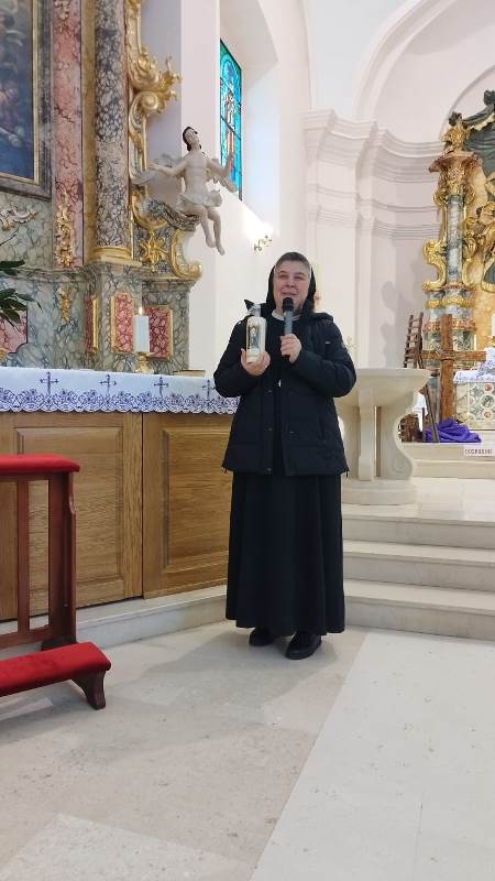 Sutradan, 1. ožujka 2026. godine, spomenute sestre SMI iz Sarajeva, sudjelovale su u nedjeljnom misnome slavlje s vjernicima župe Pakrac. Pred kraj misnoga slavlja, s. M. Kristina Adžamić je predstavila život i djelovanje sestara SMI, s naglaskom apostolskog djelovanja u kući „Egipat“ s djecom i mladima koji su izmješteni iz svojih obitelji.