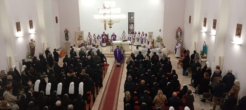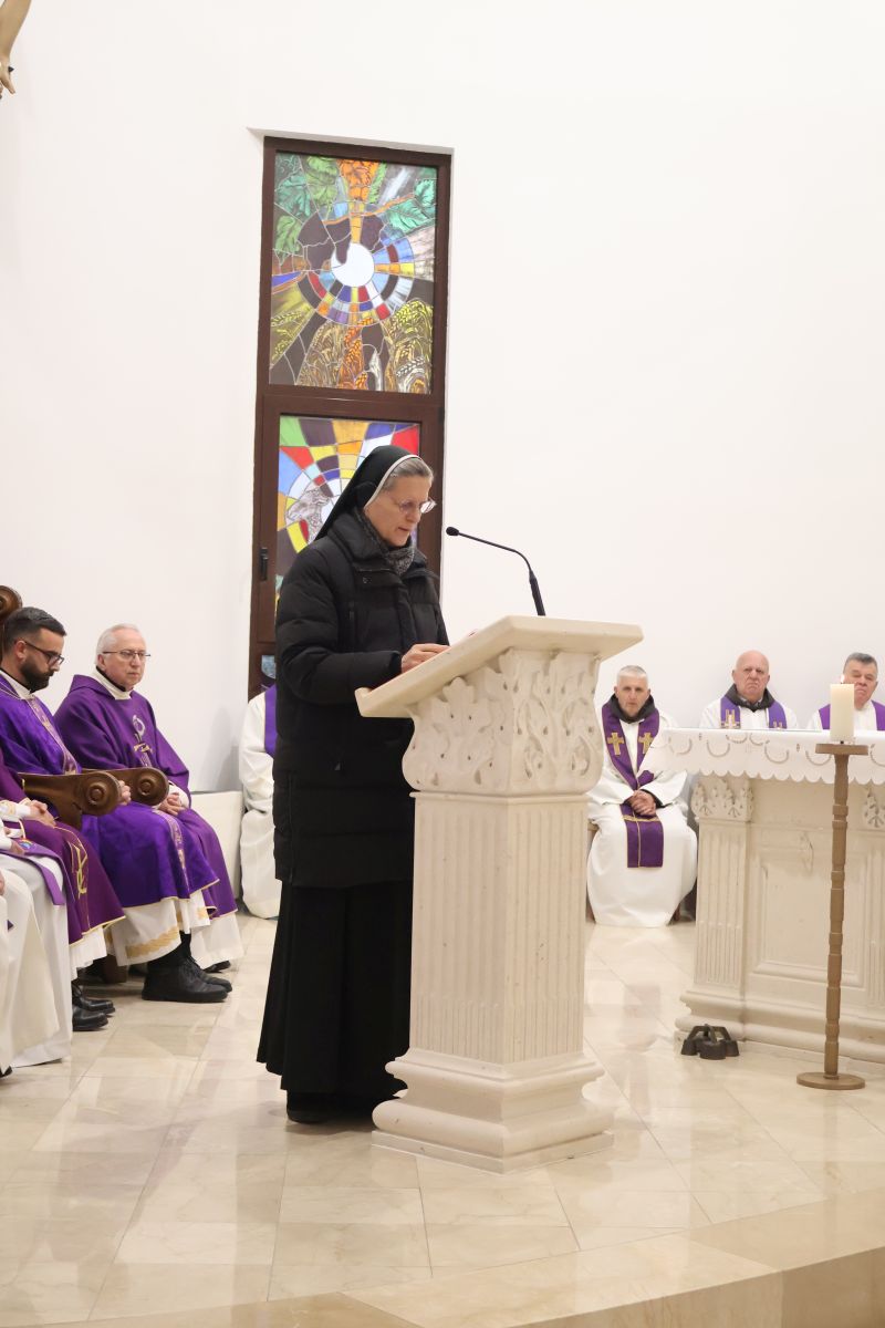 Četvrtak, 22. 1. 2026. U srijedu 21. siječnja 2026. godine u Košutama bio je ispraćaj naše pokojne s. M. Dulceline Plavša. Sprovodne obrede i sv. misu predvodio je i predslavio don Ante Gavrilo, župnik Župe Srca Isusova u Košutama, u koncelebraciji s trideset svećenika, među kojima je bio i generalni vikar Splitsko-makarske nadbiskupije, mons. Franjo Frankopan Velić. Evanđelje i pjevane dijelove sprovoda otpjevao je maestro don Šime Marović, dugogodišnji prijatelj i suradnik s. M. Dulceline. U homiliji je don Ante istaknuo da je s. M. Dulcelina kroz glazbu propovijedala Evanđelje, da je glazba bila most kojim nas je vodila Nebu, k samom Bogu kojemu treba biti usmjereno sve u našem životu, Bogu kojem se trebamo klanjati, slaviti Ga i hvaliti. Upravo je glazba i pjesma kojoj se s. M. Dulcelina posvećivala i kojom se služila, oblikovala ne samo nju nego i sve one koje je uključivala u pjevanje i slavljenje Boga. Spomenuo je sv. Augustina i njegovu poznatu misao: „Tko pjeva, dvostruko moli“ istaknuvši kako je s. M. Dulcelina to činila s velikom lakoćom, spontanošću, radošću, jer je pjevala srcem. Na kraju je istaknuo da ono što je uvježbavala ovdje na zemlji, sada nastavlja tamo gdje nas je sve svojim sviranjem i pjesmom uvijek upućivala - u svečanostima nebeske liturgije. Njezini nećaci pročitali su misna čitanja i otpjevali psalam „Gospodin je pastir moj“. Svečanosti i ljepoti misnog slavlja doprinio je župni zbor kojem su se pridružile naše sestre i članovi župskih zborova iz župa gdje je služila s. M. Dulcelina: Vrgorac, Metković, Dugopolje, Kaštel Kambelovac i Mravince-Kučine. Svirao je maestro Mirko Jankov, dugogodišnji suradnik naše s. M. Dulceline. Izborom pjesama „Samo Bog je ljubav moja“ i „Kako su mili stanovi Tvoji“ te njihovom predivnom izvedbom, mješoviti zbor je pokazao i dokazao da je prepoznao životno ulaganje s. M. Dulceline, da isti donosi urod ali i da joj se upravo ovim pjesmama kojim je sama disala, iskaže zahvalnost dok joj duša prelazi preko mosta.
