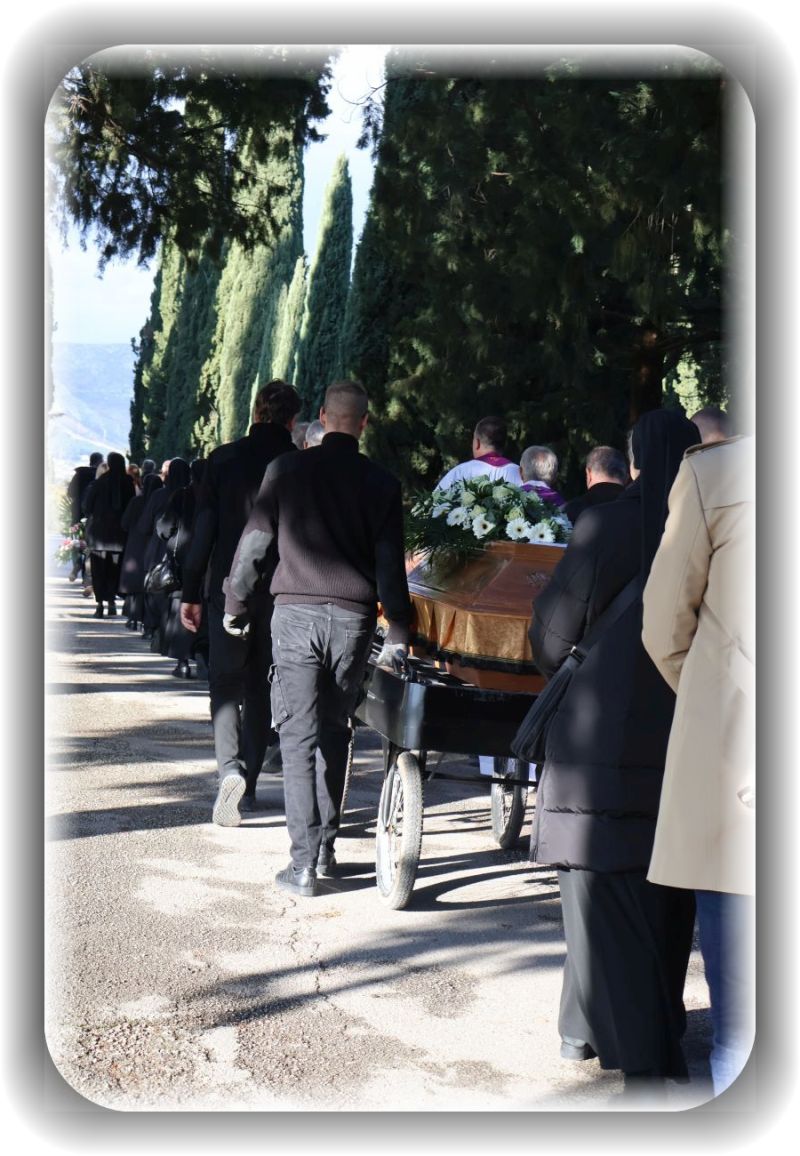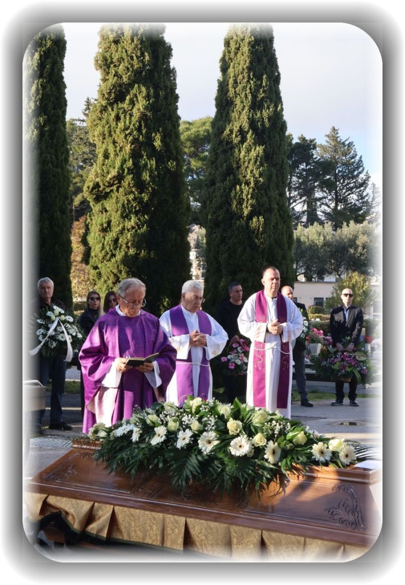 Potom je s. M. Marija Banić iskazala sućut s. M. Merici Lovrić, nećakinji s. M. Laure, i svoj rodbini. Zahvalila se s. M. Anamariji Radan koja je iz Zagreba stigla na ovaj sprovod u ime Vrhovne uprave, don Petru Dukiću koji je predvodio misno slavlje i sprovodne obrede, kao i svećenicima u koncelebraciji. Zahvalila se sestrama u Solinu i Košutama koje su se brinule za s. Lauru za vrijeme njene bolesti, posebno s. M. Ivi Serdarević koja se o njoj brinula u obje spomenute zajednice, kao i sestrama koje su, u velikom broju, došle iz svih naših zajednica. Sestru M. Lauru na vječni počinak ispratile su i sestre drugih redovničkih zajednica, Sestre milosrdnice, Školske sestre franjevke, Službenice Milosrđa.