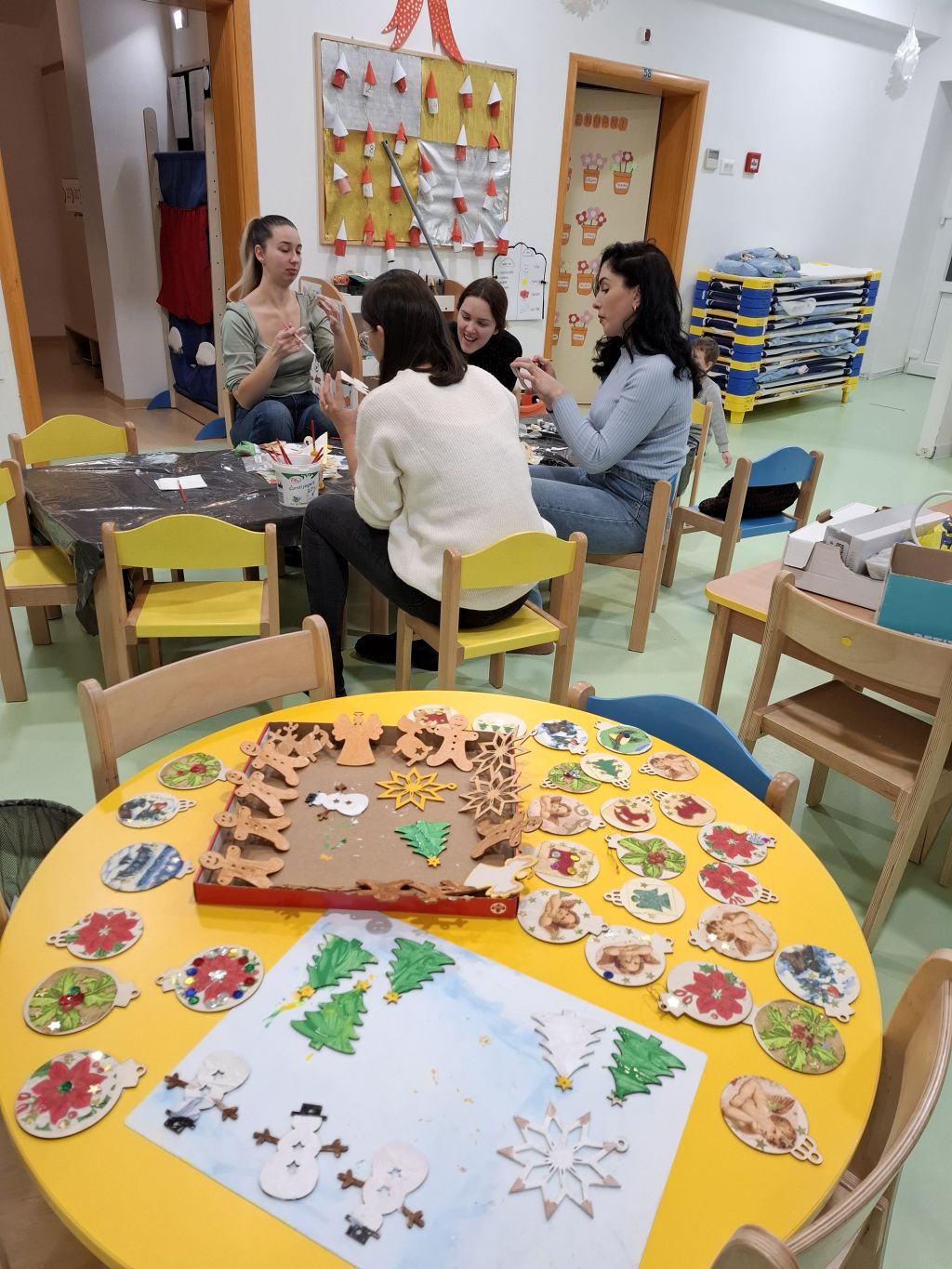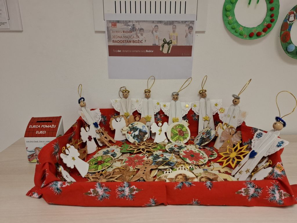 Na drugoj humanitarnoj radionici roditelji su sa djecom izrađivali božićne ukrase od kojih smo skupljali novčani prilog za djecu u Boliviji. Osim roditelja i djece, u humanitarnoj akciji “Jedna majica za radostan Božić“, dobrovoljnim novčanim prilozima sudjelovali su i svi djelatnici vrtića.