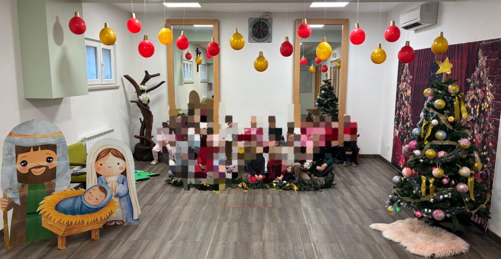 Za Božić su djeca sa odgajateljicama pripremila božićnu priredbu za roditelje koja je prikazana u sestarskoj dvorani samostana Srca Isusova i Marijina.