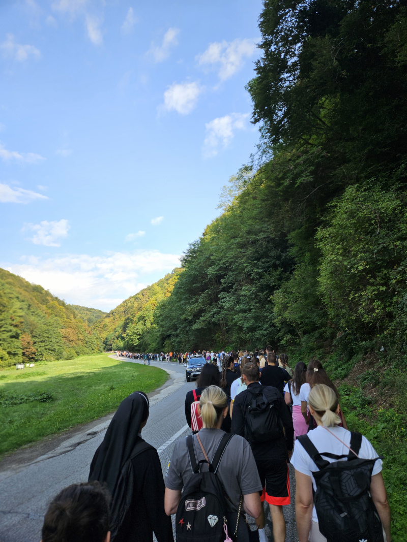 Istoga dana hodočasničkim putem iz Kašine prema Mariji Bistrici krenuli su mladi Zagrebačke nadbiskupije, kojima su se u molitvenom zajedništvu pridružile mlađe sestre, juniorke i kandidatice sestara Služavki Maloga Isusa Zagrebačke provincije. Po dolasku u Svetište ophodili su oltar Majke Božje Bistričke, a zatim slavili misu koju je predvodio povjerenik Ureda za pastoral mladih vlč. Filip Šešek u suslavlju s rektorom svetišta preč. Tomicom Šestakom i mnoštvom župnika i župnih vikara koji prate mlade na hodočašću. U homiliji je povjerenik vlč. Šešek, koristeći primjer svetih Piera Giorgia Frassatija i Carla Acutisa, poručio mladima da i u današnje vrijeme mogu postati sveti.