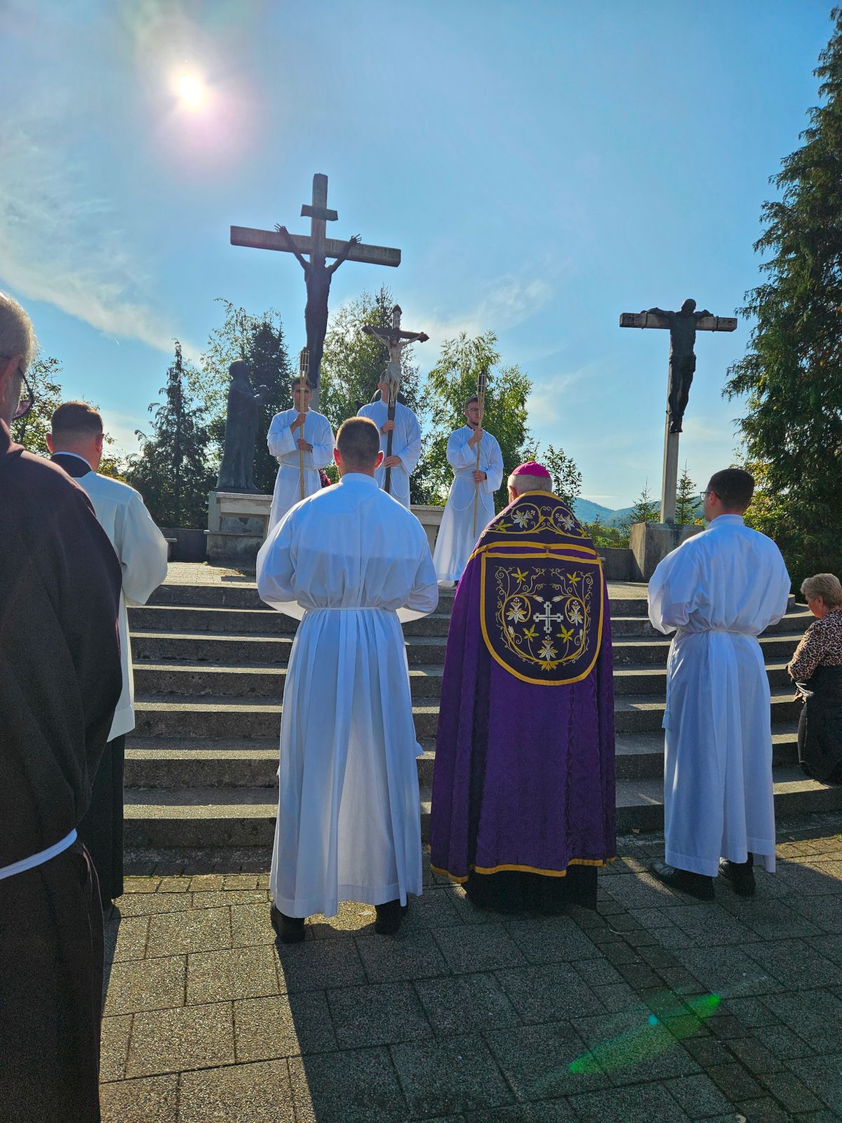 Istaknuo je da je znakovito „i to da naše zavjetno hodočašće pada na dan kada Crkva slavi blagdan Uzvišenja svetoga Križa. Na križu je Sin Božji proslavljen jer je ostao Ocu poslušan do kraja. Pod križem je Majka ostala vjerna jer je u tami sačuvala nadu. Stoga su križ i Majka nerazdvojivo povezani. Križ nam pokazuje visinu Božje ljubavi, a Marija dubinu nade koja nikada ne razočarava. Zato i naš dolazak ovamo nije samo izraz pobožnog običaja, nego čvrstog uvjerenja da pred Marijinim likom možemo pronaći novu snagu; da u njezinoj majčinskoj blizini možemo otkriti smisao u svojim tamnim trenucima; da nam ona može pomoći pretvoriti naše tjeskobe u povjerenje, a naše slabosti u hod prema Kristu.“