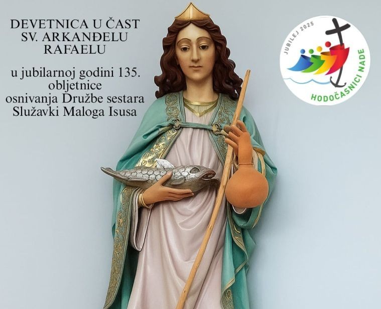 Čvrsto se nadam da će svaki dan našeg zahvalnog hoda, u ovoj Svetoj jubilarnoj godini obogaćivati naše sestrinsko zajedništvo, učvršćivati vjeru i nadu, jačati žar služenja Malom Isusu, prisutnom u „najmanjima“. Budimo i mi poput arkanđela Rafaela koji spremno izvršava Božju zapovijed i hita u pomoć bližnjemu, poučava, snaži, vodi, krijepi i liječi. Tako postajemo živi znak nade i blagoslov za druge na hodočasničkom putu vjere. Činimo dobro i Gospodin će biti s nama. Zahvaljujem svim sestrama koje su pridonijele da i u ovoj Jubilarnoj 2025. godini i o 135. rođendanu Družbe imamo prigodnu devetnicu sv. Rafaelu. Drage sestre, dragi Prijatelji Maloga Isusa, želim svima zajedno i svakom osobno, blagoslovljenu pripravu za slavlje svetkovine našega nebeskoga zaštitnika sv. arkanđela Rafaela i 135. obljetnicu Družbe Služavki Maloga Isusa. Molimo zajedno da sv. arkanđeo Rafael prinese sve naše zahvalne molitve i žrtve pred lice Svevišnjega.