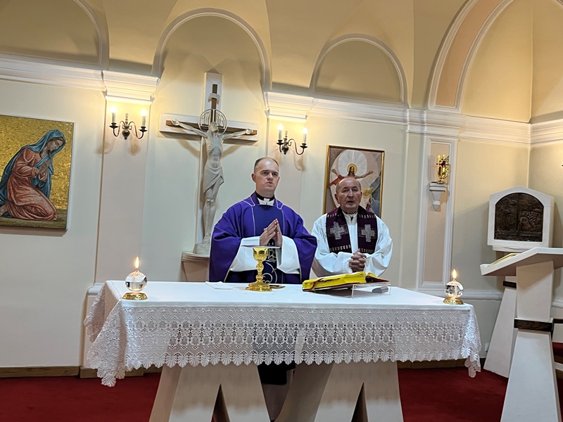 Nakon predavanja uslijedilo je klanjanje Presvetom Oltarskom Sakramentu te sakrament pomirenja. Potom je uslijedilo misno slavlje koje je predslavio vlč. Hrvoje u koncelebraciji sa vlč. Markom Hrskanovićem, duhovnikom u Vrhbosanskom bogoslovnom sjemeništu. U prigodnoj propovijedi, vlč. Hrvoje progovorio je o Božiću kao najradosnijem blagdanu, koji nije najradosniji zbog izvanjskih stvari, već zbog njegova sadržaja, a to je spasenje. Zatim je govorio o važnosti povjerenja u našim odnosima, koje je danas u velikoj krizi i kako se često osjećamo usamljeni i bez ikoga tko nas može saslušati. No kako je rekao, sam Bog dolazi među nas, dolazi u naše odnose i dolazi nam reći da nitko od nas nije sam, već da imamo Njega u kojega možemo imati povjerenja na koga se možemo osloniti i tko je vjeran i onda kada mi sami nismo.
