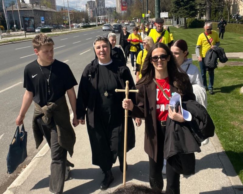 Na koncu, svoj hod smo završili u Katedrali Presvetog Srca Isusova s molitvom na grobu njezina graditelja, sluge Božjega nadbiskupa J. Stadlera, koju su animirali PMI iz Viteza sa s. M. Danicom Bilić.