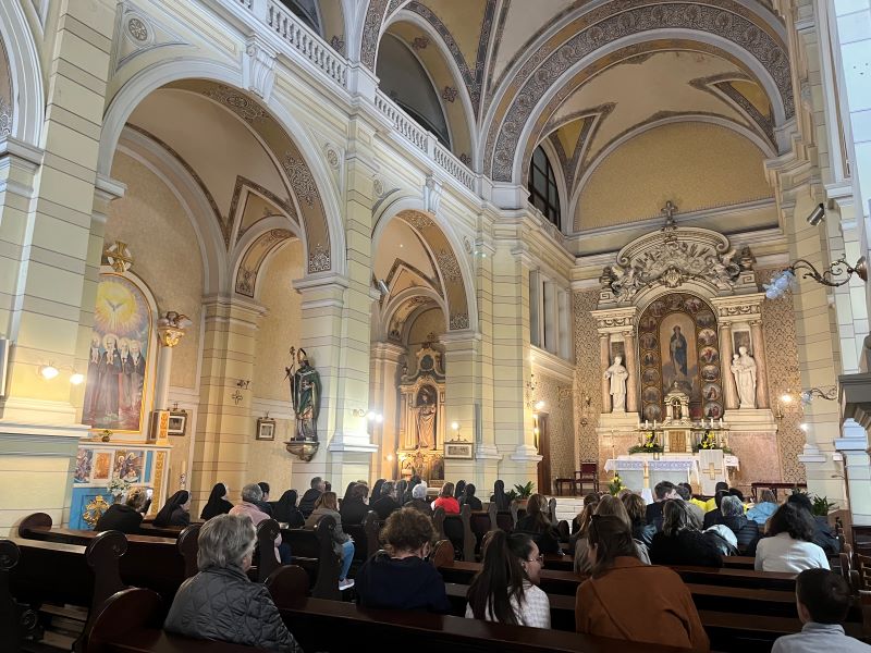 Druga crkva koju smo pohodili je crkva Presvetog Trojstva u Novom Sarajevu. Utemeljitelj dr. Josip Stadler je prepoznao potrebe novodoseljenih katoličkih obitelji u radničkom kvartu, a od velikog značaja za njih su bile i sestre Kćeri Božje Ljubavi. Tu smo neko vrijeme ostali u molitvi Presvetom Trojstvu i Blaženoj Djevici Mariji s nakanom za mir u svijetu.