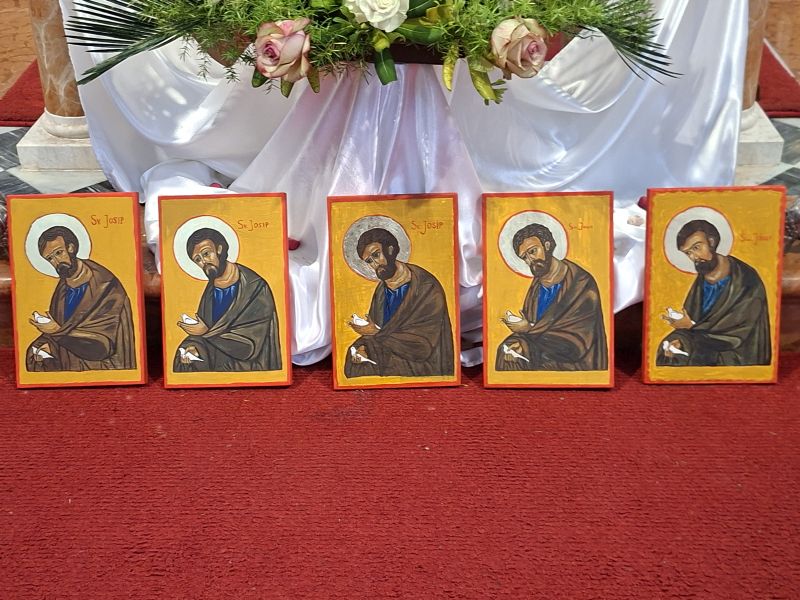 U župnoj dvorani i crkvi odvijao se rad ikonopisanja u šutnji i molitvi, kroz kratke meditacije o sv. Josipu. Na usluzi, radosno nam je bila pri ruci s. Eduarda Marić. U poslijepodnevnim satima okupili smo se zajedno splitski i Stivanjski predstavnici PMI i započeli uvodom gđe Višnje o svrsi i smislu ikonopisanja koji se odvija kroz molitvu, meditaciju i osobno proživljavanje. Priopćeno je da će rad biti sv. Josip kod prikazanja Isusa u hramu. Sestra Dolores u kratkim crtama tijekom rada imala je zadatak animirati o snažnim karakteristikama sv. Josipa i njegovoj ulozi u sv. obitelji i motivaciji Njega za svih nas. On je trajan uzor vjere, hrabrosti, odgovornosti i povjerenja u Boga. Njegova šutnja je plodonosna, duboko značajna, ona razlučuje…. Postojan, čvrst, odlučan za Božju stvar. To nam danas svima nedostaje. Bio „ najmanji“ član sv. Obitelji a imao veliku ulogu, uvijek tih, ponizan. Molili smo ga da nam pomogne USTOLIČITI Isusa u našem srcu. Molitvene nakane su se prikazivale za duhovna zvanja, posebno za sestre Služavke. Domaće članice PMI gđa Tereza animatorica i Ivana, ulazeći u ovaj način sudjelovanja, bile su ohrabrene, osnažila ih je misao: „Kad Bog pozove, On i osposobljuje.“ U subotnje predvečerje sv. Josip je pred nama oslikan – napisan u Ikoni. Tada nam se pridružio u završnici i Niki Krstičević iz Splita koji je imao i svoju dodijeljenu osobitu ulogu.