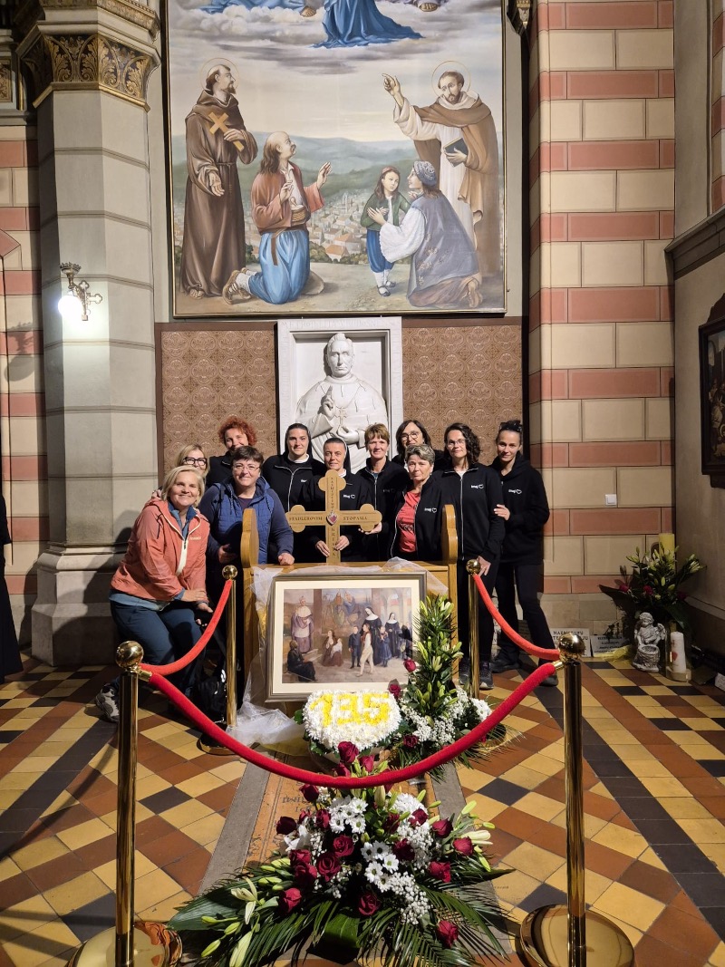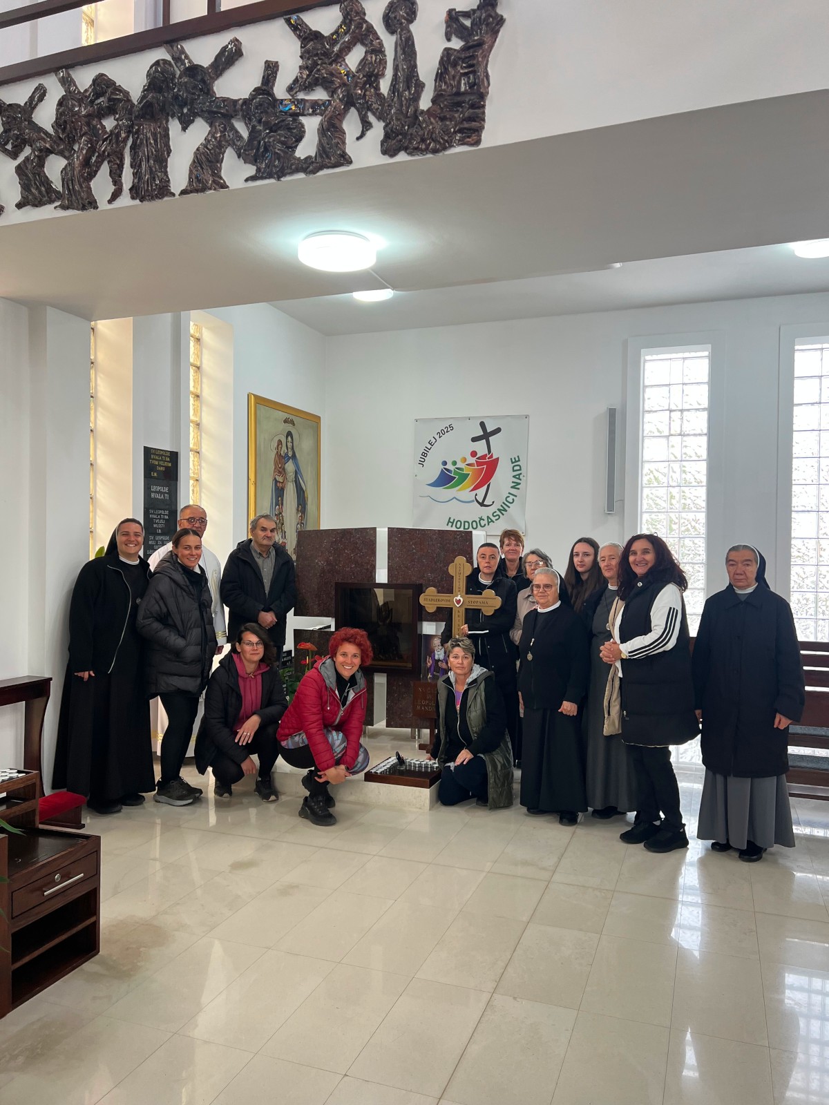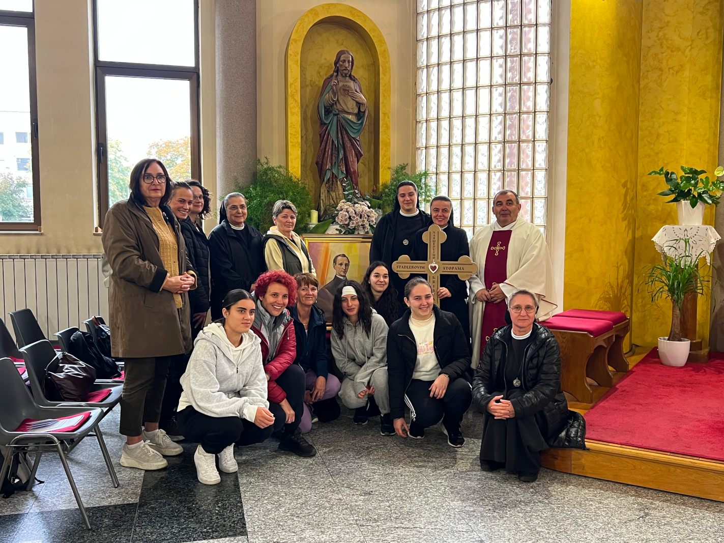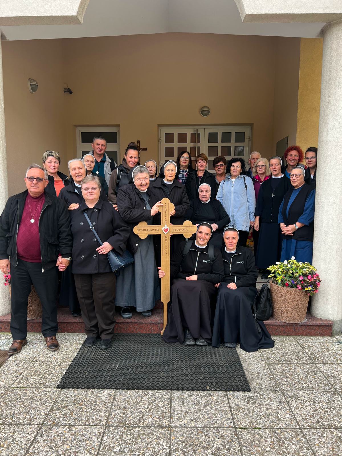 Petak, 24. 10. 2025.Hodočasnici nade predvođeni s. M. Emanuelom Pečnik, provincijskom glavaricom i s. M. Zrinkom Šutalo, pročelnicom DPMI-a, u danima od 13. do 23. listopada 2025. sudjelovali su u pješačkom hodočašću „Stadlerovim stopama“ od Slavonskog Broda do Sarajeva. Sudionici cijelog hodočašća okupili su se prvog dana u crkvi Gospe Brze Pomoći, župi Stadlerova krštenja te misnim slavljem koje je predslavio preč. Anđelko Cindori, slavonskobrodski župnik, započeli ovo povijesno djelo. Na kraju misnog slavlja s. Zrinka je hodočasnicima uručila hodočasničke putovnice. Župnik je pješacima hodočasnicima udijelio blagoslov i oni su pošli prema Savi na granični prijelaz u Stadlerovu Bosnu noseći hodočasnički križ koji je posebno izrađen za ovo hodočašće. Hodočasnički križ uvećana je replika Stadlerovog pektorala. Križ je izrađen od hrastovog drveta, simbola Slavonije, u spomen Stadlerovog rodnog mjesta te je urešen pleterom u znak Stadlerovog domoljublja. U sjecištu greda nalazi se relikvijar u obliku Srca Isusova kao replika Stadlerovog biskupskog prstena u kojem je pohranjen komadić štole. Na poleđini križa nalazi se medaljon s likom sluge Božjega Josipa Stadlera.