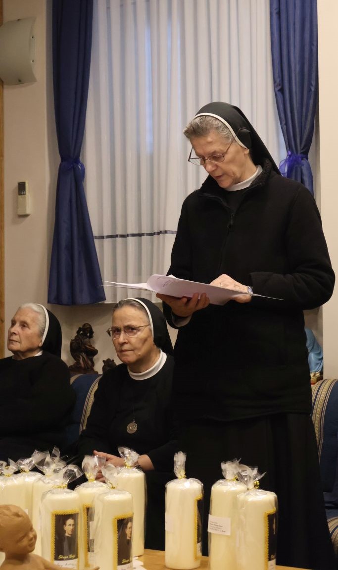 Cijeli radni i molitveni dan i susret sestra, zaokružit ćemo riječima i molitvom srca vrhovne glavarice s. M. Anđe Vranješ iz njenog govora na početku susreta: „U hodu s našim Utemeljiteljem, zagledane u Maloga Isusa, molimo milost da budemo žene nade, nositeljice svjetla i majčinske blizine u svijetu koji je gladan ljubavi, smisla i Boga„. Vrhovna glavarica je za svaku zajednicu uručila izrađenu svijeću sa slikom našeg Utemeljitelja, sve u želji da sve zajednice, sve sestre, budu zahvaćene plamenom ljubavi Onog koji je Ljubav.