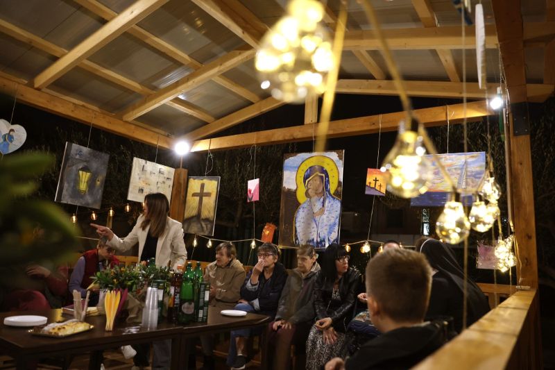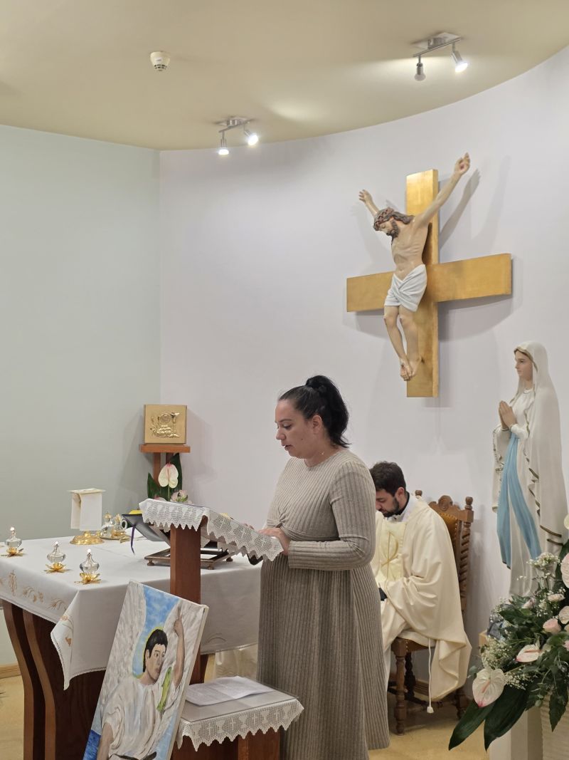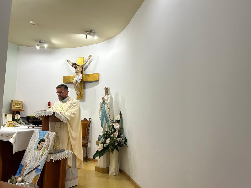 U nastavku večeri svetu misu predvodio je don Dino Prkut, koji je u svojoj propovijedi progovorio o opasnosti sebičnosti i koristoljublja. Podsjetio je da „ono što imamo nismo pozvani gomilati, nego darovati“ – jer tek kad svoje stavimo u Božje ruke, postaje blagoslov i za nas i za druge. Prije završnog blagoslova don Dino je i blagoslovio ikone koje su na duhovnoj obnovi za djelatnike Doma, koju su predvodili don Jure Vrdoljak, Višnja Rickijević - prijateljica Malog Isusa i s. Milana, napisale djelatnice Doma.