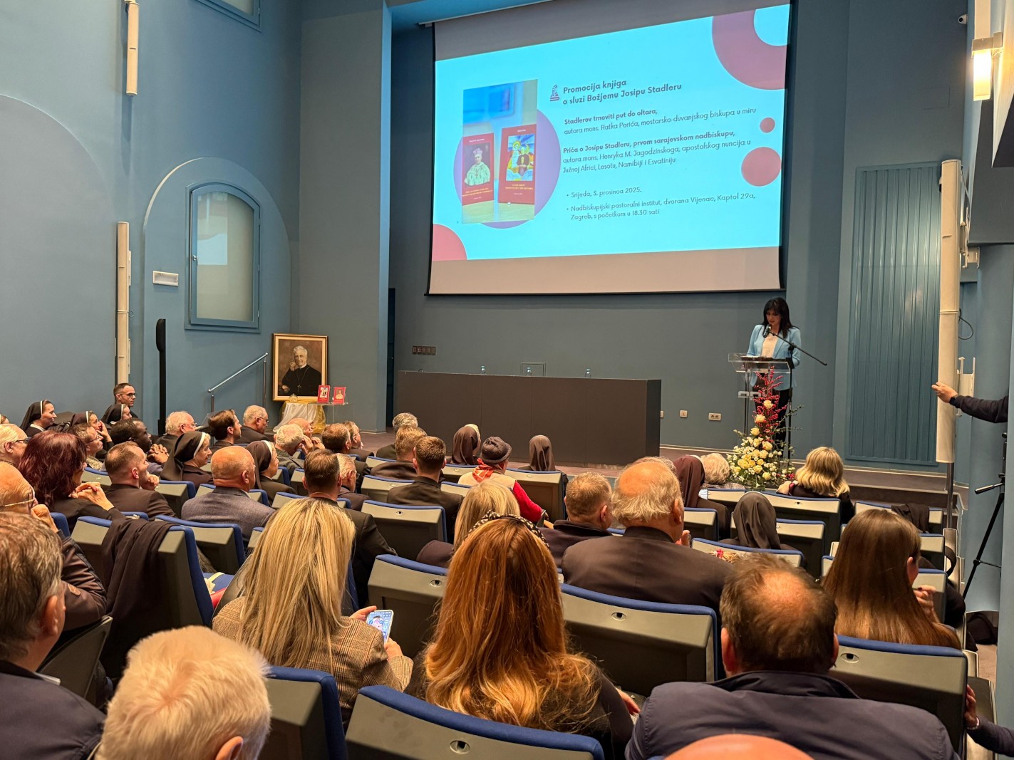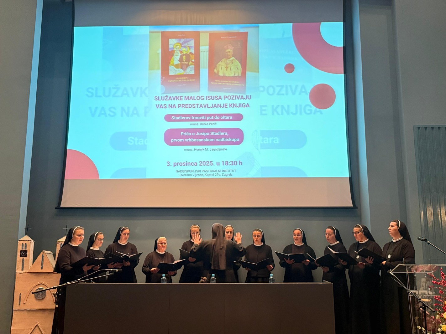 Petak, 5. 12. 2025.U srijedu, 3. prosinca 2025., u dvorani Vijenac Nadbiskupijskog pastoralnog instituta na Kaptolu u Zagrebu održano je svečano predstavljanje dviju novih knjiga o dr. Josipu Stadleru, prvom vrhbosanskom nadbiskupu i utemeljitelju Družbe sestara Služavki Malog Isusa. Među nazočnima na predstavljanju bili su: mons. Dražen Kutleša, zagrebački nadbiskup, kardinal Josip Bozanić, zagrebački nadbiskup u miru, mons. Ratko Perić, mostarsko-duvanjski biskup u miru, mons. Ivan Štironja, porečko-pulski biskup, novoimenovani pomoćni biskupi mons. Vlado Razum i mons. Marko Kovač, mons. Juraj Jezerinac, vojni ordinarij u miru, mons. Ilija Jakovljević, generalni vikar Vojnog ordinarijata, dr. Krunoslav Novak, generalni tajnik HBK, te s. Lidija Bernardica Matijević SSFCR, predsjednica Hrvatske redovničke konferencije. Ovom predstavljanju knjiga prisustvovala je i vrhovna poglavarica Družbe sestara Služavki Malog Isusa s. M. Anđa Vranješ sa svojim savjetnicama te provincijska glavarica s. M. Emanuela Pečnik sa sestrama zagrebačke Provincije. Uz njih, događaj je okupio brojne svećenike, redovnike i redovnice, Prijatelje Malog Isusa te štovatelje sluge Božjega Josipa Stadlera.
