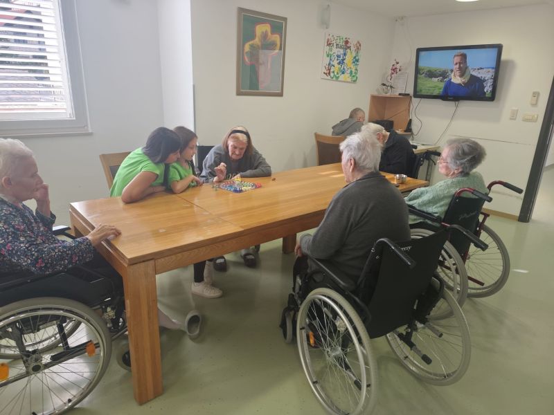 Prvi dan bio je rezerviran isključivo za druženje sa štićenicima našeg Doma. Za još više zbližavanja i upoznavanja novih, djeca su imala zadatak na balon koji je napunjen helijem nacrtati štićenika kojeg smo im dodijelili te poslije toga ispuniti „osobnu karticu štićenika“. Jedan dio ekipe je bio u blagovaonici, a ostatak se družio sa štićenicima po sobama. Nakon završenog zadatka baloni su krasili stolice, kolica i krevete štićenika. Uz pregršt smijeha, divljenja kako su ispali, naši starci su bili oduševljeni odrađenim poslom. Posebno nas je dojmilo kako je jedna štićenica rekla: „Di su dica, tu mora bit radost!“