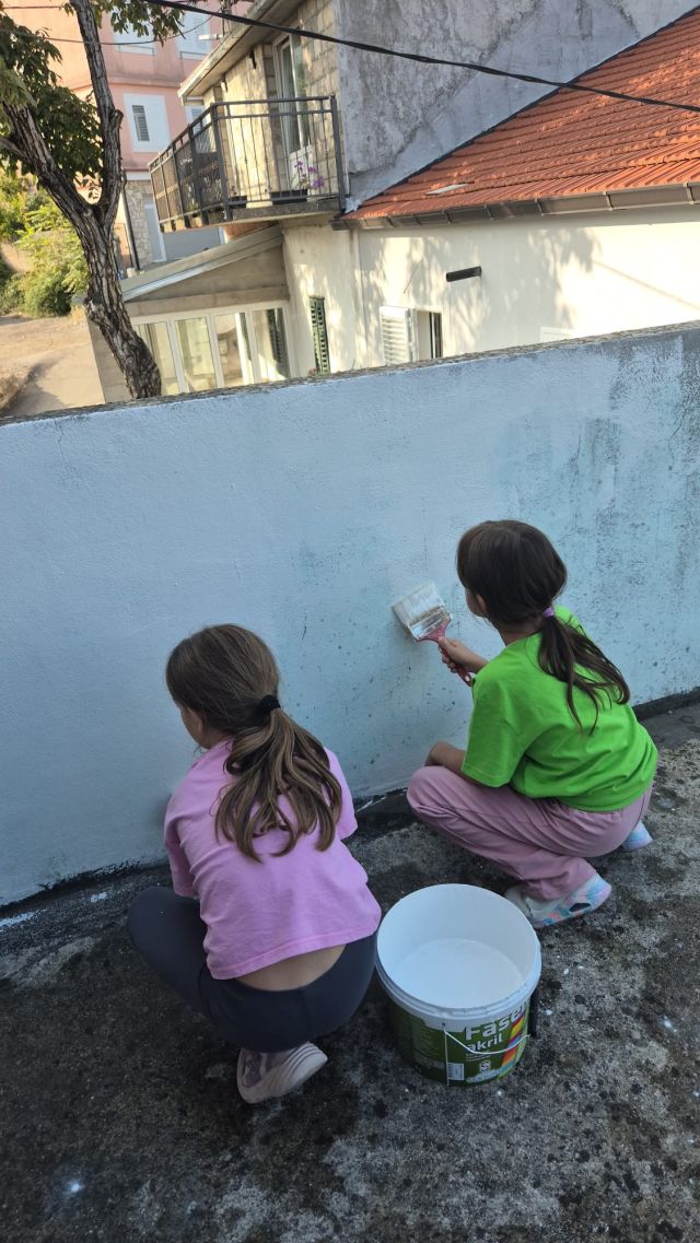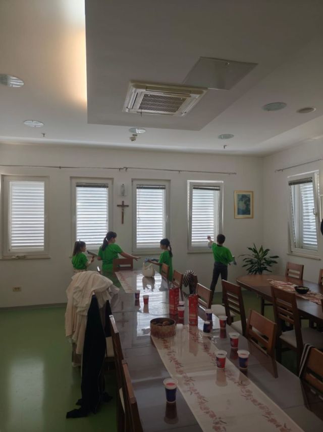 Sljedećeg dana uslijedilo je čišćenje Doma. Neki su pomagali sestrama u kuhinji, neki su proveli vrijeme u vešeraju, prali su se i prozori, pomelo se dvorište, oprala se dva auta i podrum, a i štićenici su čuli i pokoju priču iz Biblije. Svratili smo i do naših prostorija oličiti terasu te očistiti kuću za naš nadolazeći 3. rođendan. Sjaj dana sigurno je bilo besplatno pranje prozora auta prolaznicima. Pripremili smo sve što nam je bilo potrebno i krenuli u navijanje i pozivanje prolaznika da dođu zablistati svoje auto.