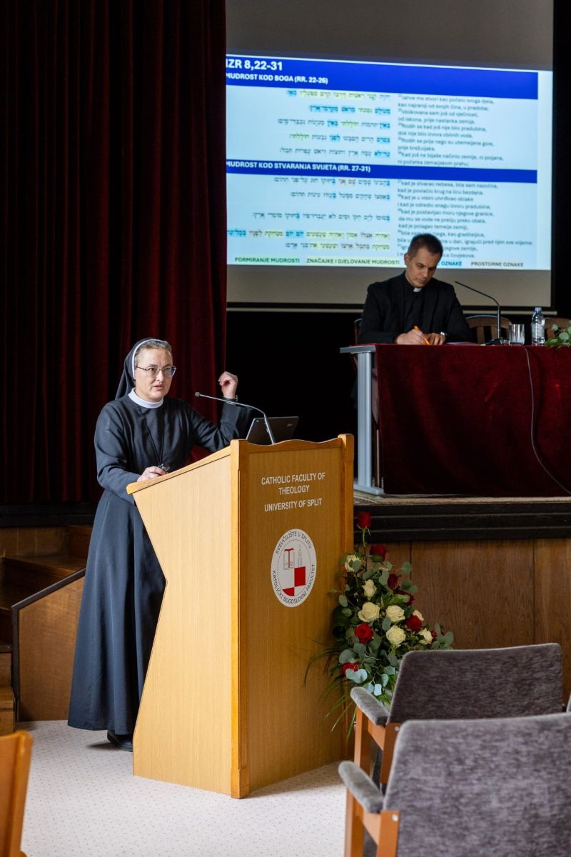 Na simpoziju, koji se održao u Velikoj dvorani Centralnoga bogoslovnog sjemeništa, sudjelovalo je deset predavača: četiri inozemna, iz Italije, Libanona, Poljske i Bosne i Hercegovine te šest hrvatskih znanstvenika. Među njima je bila i doc.dr.sc. Miljenka Grgić koja je u svom nastupu obradila temu: „Kći i/ili Mudrost, Sin i/ili Logos? biblijski analoški govor kao alternativa tradicionalnim definicijama transcendencije“. s. M. Miljenka Grgić je upravo na ovom KBF završila Filozofsko-teološki studij nakon kojeg je na Papinskom biblijskom institutu u Rimu magistrirala 2008. te 2014. godine doktorirala biblijske znanosti. Danas je zaposlena na KBF Sveučilišta u Splitu pri Katedri Svetog Pisma. U znanstvenom radu bavi se prvenstveno starozavjetnim tekstovima i aktualizacijom starozavjetnih tema.