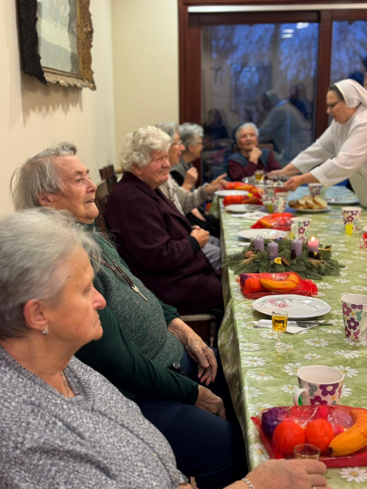 Petak, 5. 12. 2025. U petak 5. prosinca 2025. godine, naš samostan Betlehem na Kraljevcu, a također i štićenice našeg doma za starije i nemoćne osobe, razveselio je posjet svetog Nikole. Dočekale smo ga uz pjesmu i smijeh koji njegov dolazak uvijek izmami na lica. Nakon pjesme i pokoje šale, sveti Nikola krenuo je u akciju. Pomno se raspitao jesu li štićenice ove godine bile dobre, kakve su bile sestre, tko zavređuje malo veći poklon, a tko malo manji? Tko bi do iduće godine trebao biti bolji? Nakon što je dobio zadovoljavajuće odgovore, poželio je nešto otpjevati. Dok smo pjevali, polako je dijelio poklone i praznio svoju veliku vreću. Za kraj je podijelio jednu priču iz koje smo naučili da dobro djelo učinjeno s vjerom, uvijek pronađe put natrag te kako se dobrota vraća uvijek i neumorno. Ova kratka priča ostat će nam trajan poticaj da do iduće godine svi budemo bolji.