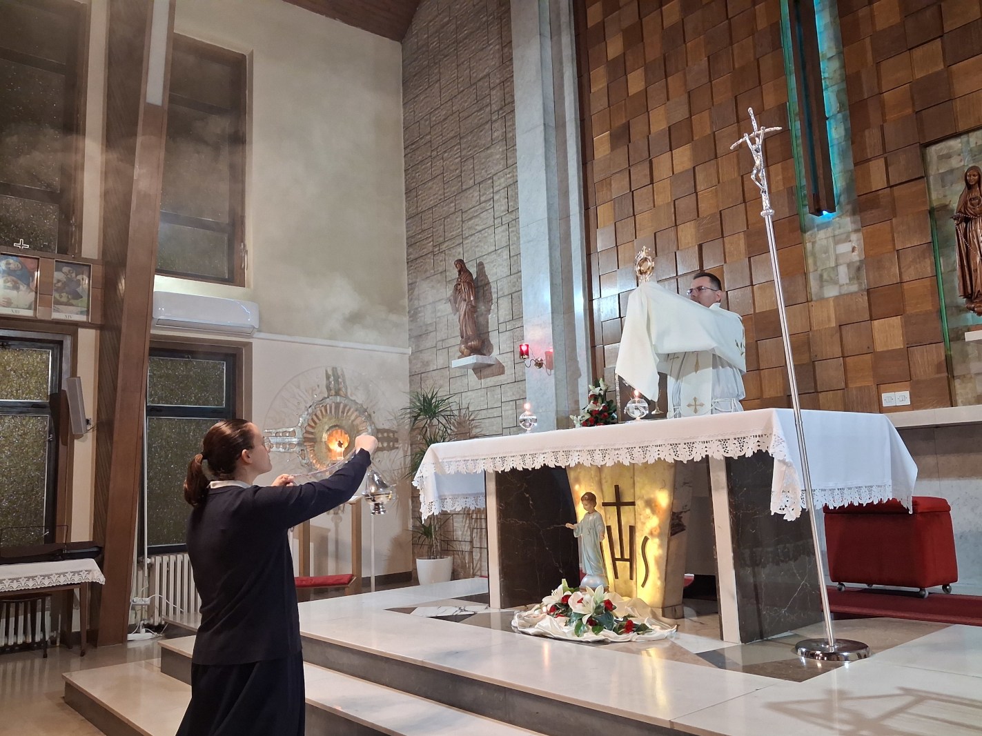 Četvrtak, 27. 11. 2025. Dana 25. studenog 2025. godine slavilo se otajstvo utjelovljenja u samostanu Betlehem, mjestu osobita štovanja Djeteta Isusa te je dovršen devetomjesečni molitveni hod prema svetkovini Božića. Ovom prigodom u samostan Betlehem hodočastili su Prijatelji Malog Isusa iz Župe Presvetog Trojstva u Krašiću zajedno sa župnikom vlč. Ivanom Vučakom i sestrama Služavkama Malog Isusa. Sestre su pristigle iz Krašića, Vojnog ordinarijata i iz Nove Vesi, predvođene provincijskom glavaricom s. M. Emanuelom Pečnik.