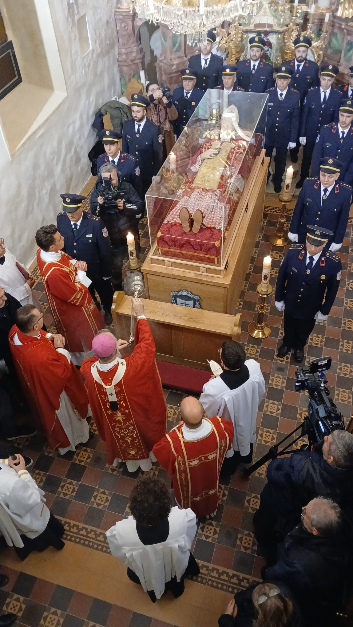 Nedelja, 30. 11. 2025. Prilikom otvaranja Jubilarne godine, krajem mjeseca prosinca 2024. godine, iz potresom oštećene zagrebačke katedrale, relikvije bl. Alojzija Stepinca bile su prenesene u Bogoslužni prostor na zagrebačkom Kaptolu gdje su sve do današnjeg dana bile izložene vjernicima na štovanje.